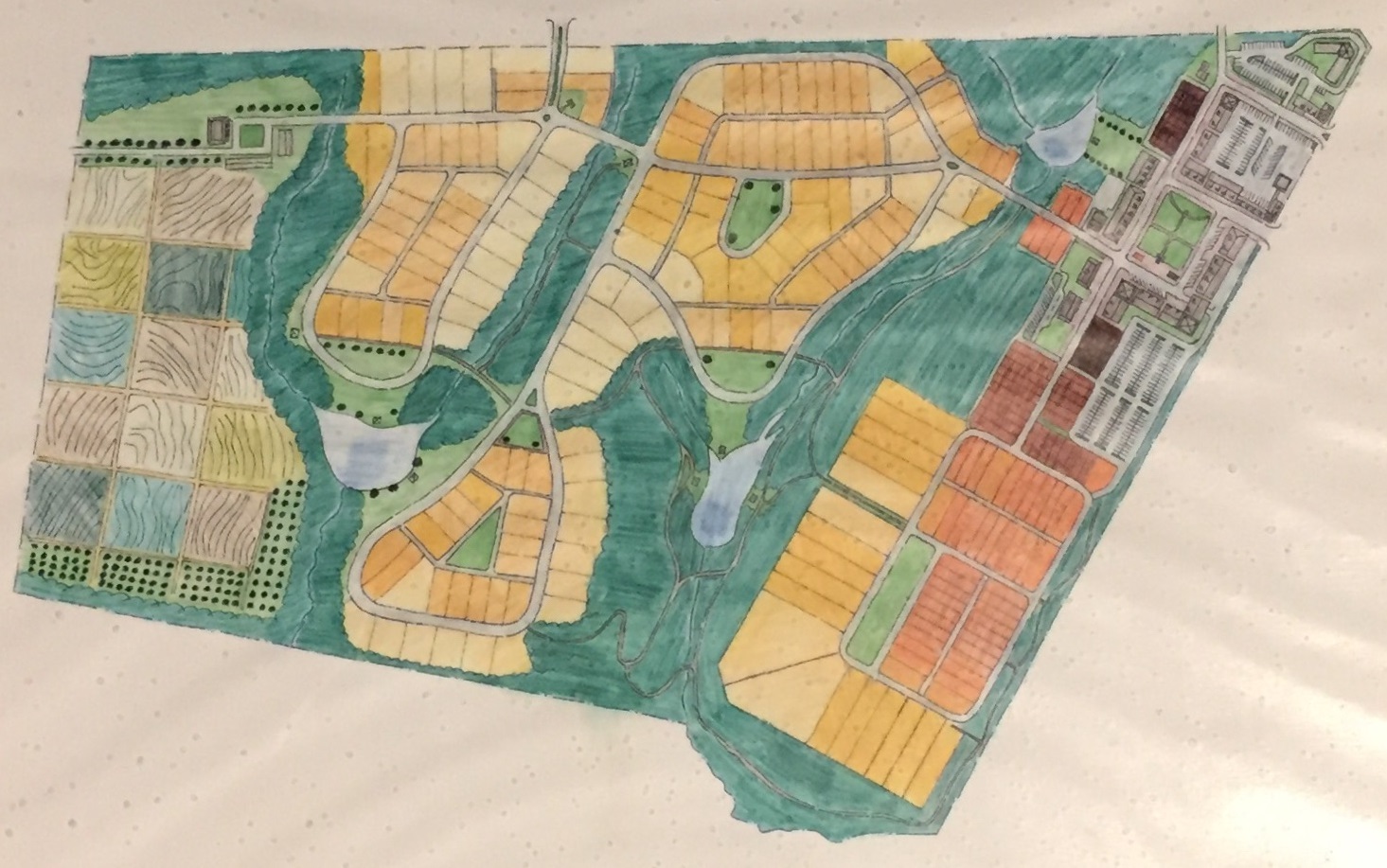 110 acres, 300 residential units, 80,000 square feet commercial, and 40% open space