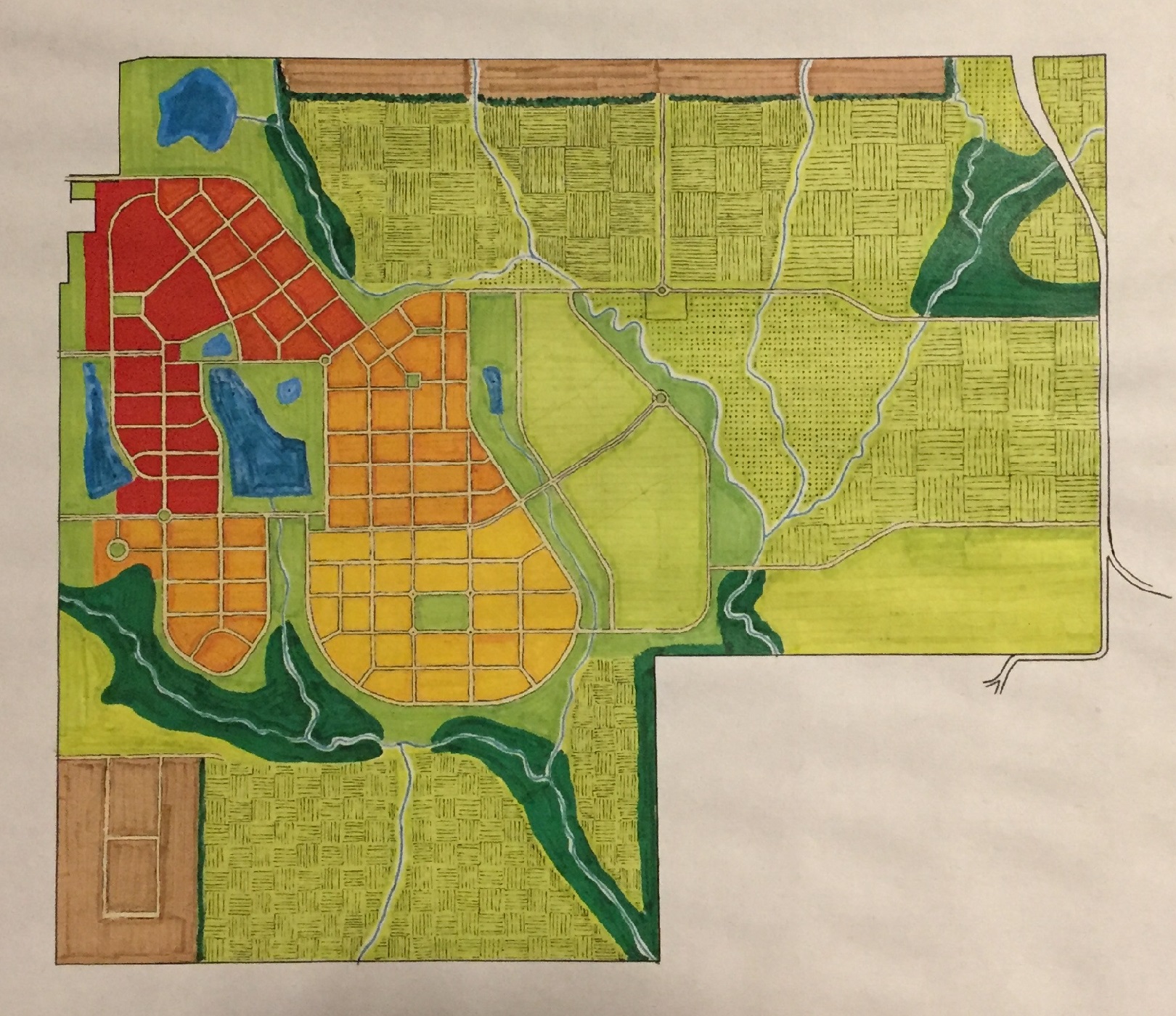 Located on the Florida Panhandle, the program for this 1,400 acre site is centered on a new conference and retreat facilities for the Chautauqua Center. A variety of residential types are included across 1,000 units, and 100,000 square feet of commercial space are included. Approximately 1,040 acres of open space emphasizes organic food production. Additionally, 150 acres of industrial space includes a solar electric facility and organic food processing center.